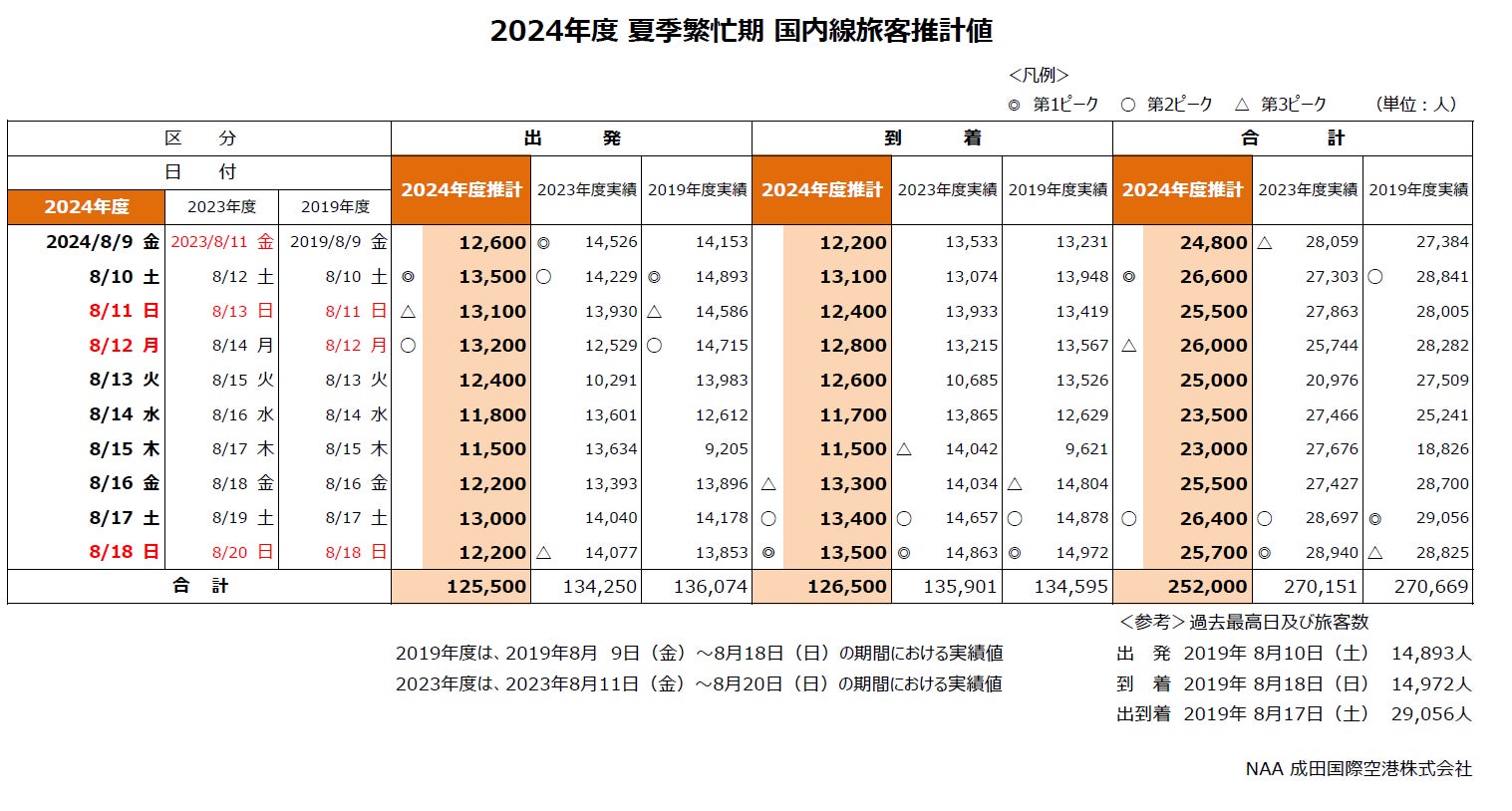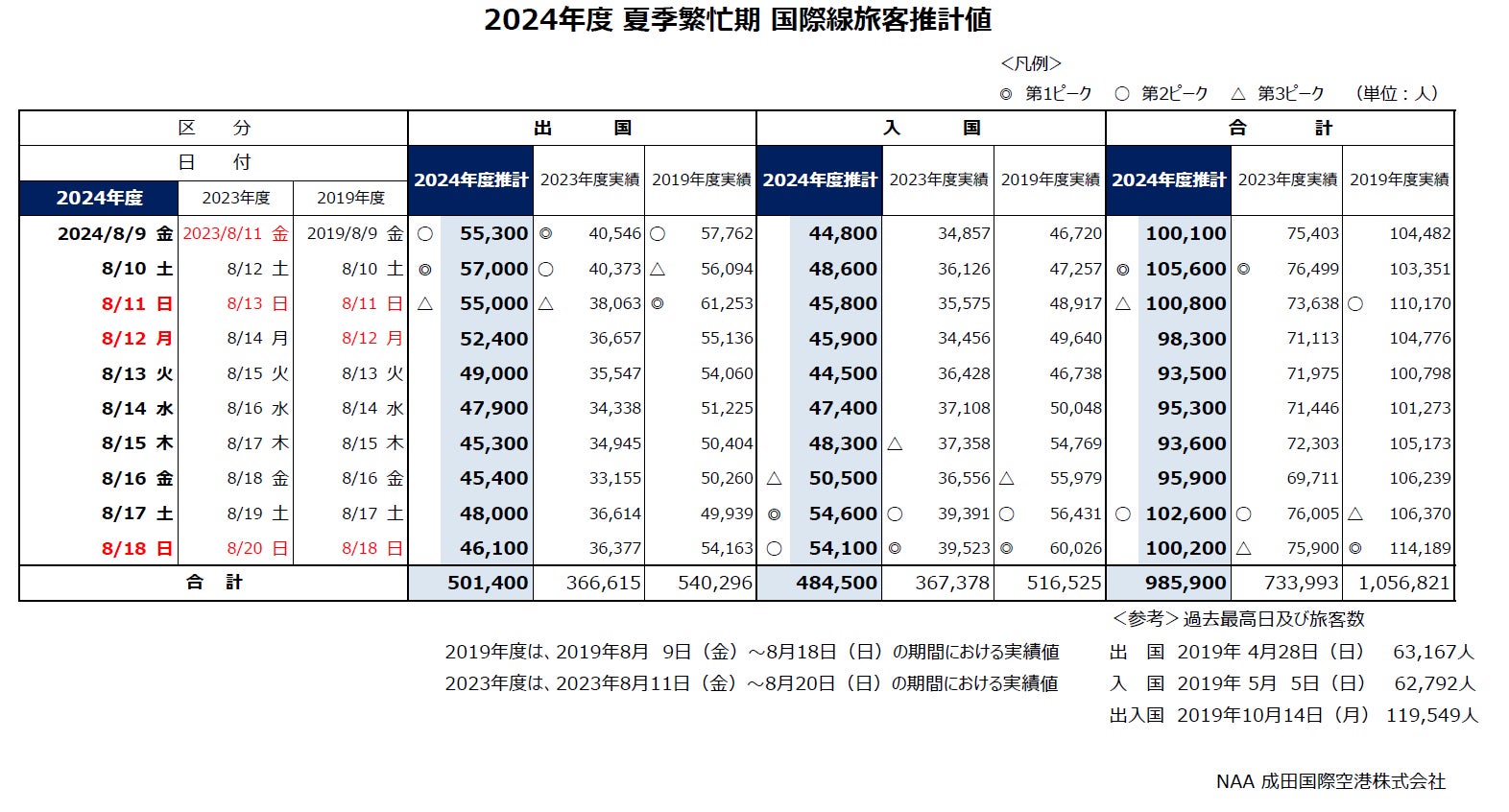 成田国際空港株式会社はこの度、本年お盆期間中に成田空港をご利用になる旅客数の推計を取りまとめましたので、お知らせいたします。なお、本推計値は、社会情勢をはじめ、様々な要因により結果が変動する可能性があるため、参考数値としてご参照ください。