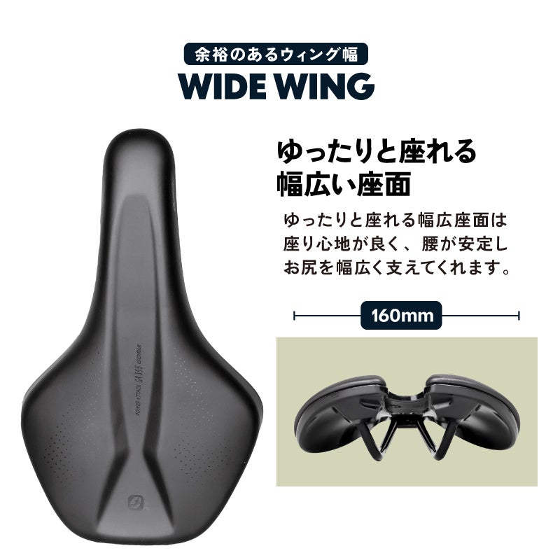 どっしり座れる幅広座面とクッション性が抜群、そしてシンプルでスポーティーなデザインです。厚めのクッションで長時間座っていてもお尻の痛みがでにくいコンフォート性を重視した、ロングライド向きのサドルです。