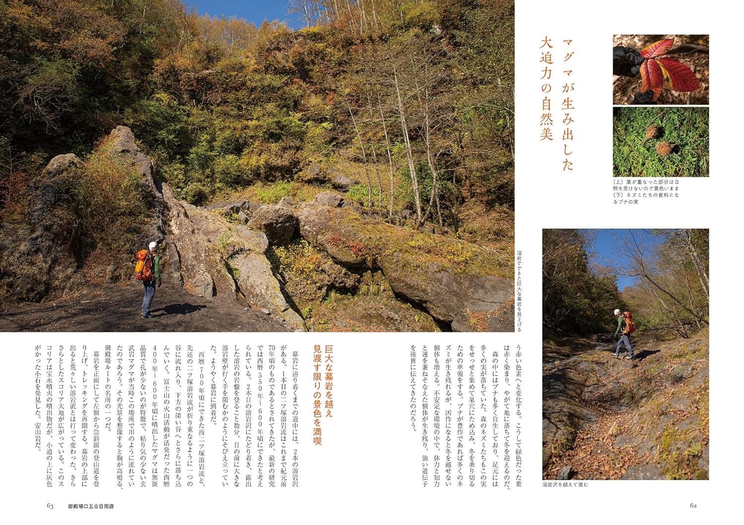 道中に見られる植物や鳥、岩石なども詳しく解説しているので、山麓の自然を楽しみたい人にはうってつけのガイドブック。富士山の知られざる一面に触れられる山旅を、ぜひお楽しみください。