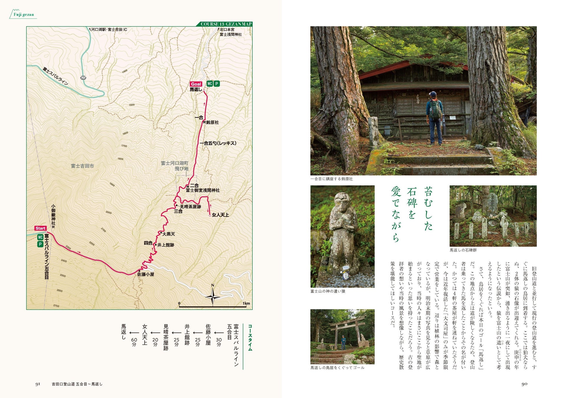 本書は18の下山ルートを、南麓エリア(富士宮口)・東麓エリア(御殿場口・須走口)・北麓エリア(吉田口・青木ヶ原樹海)の3章仕立てで紹介。富士宮口ではダイナミックな宝永火口の景観、御殿場口では美しい広葉樹の森、吉田口では富士講で栄えた信仰の遺跡など、個性あふれるルートをマップ付きで紹介します。