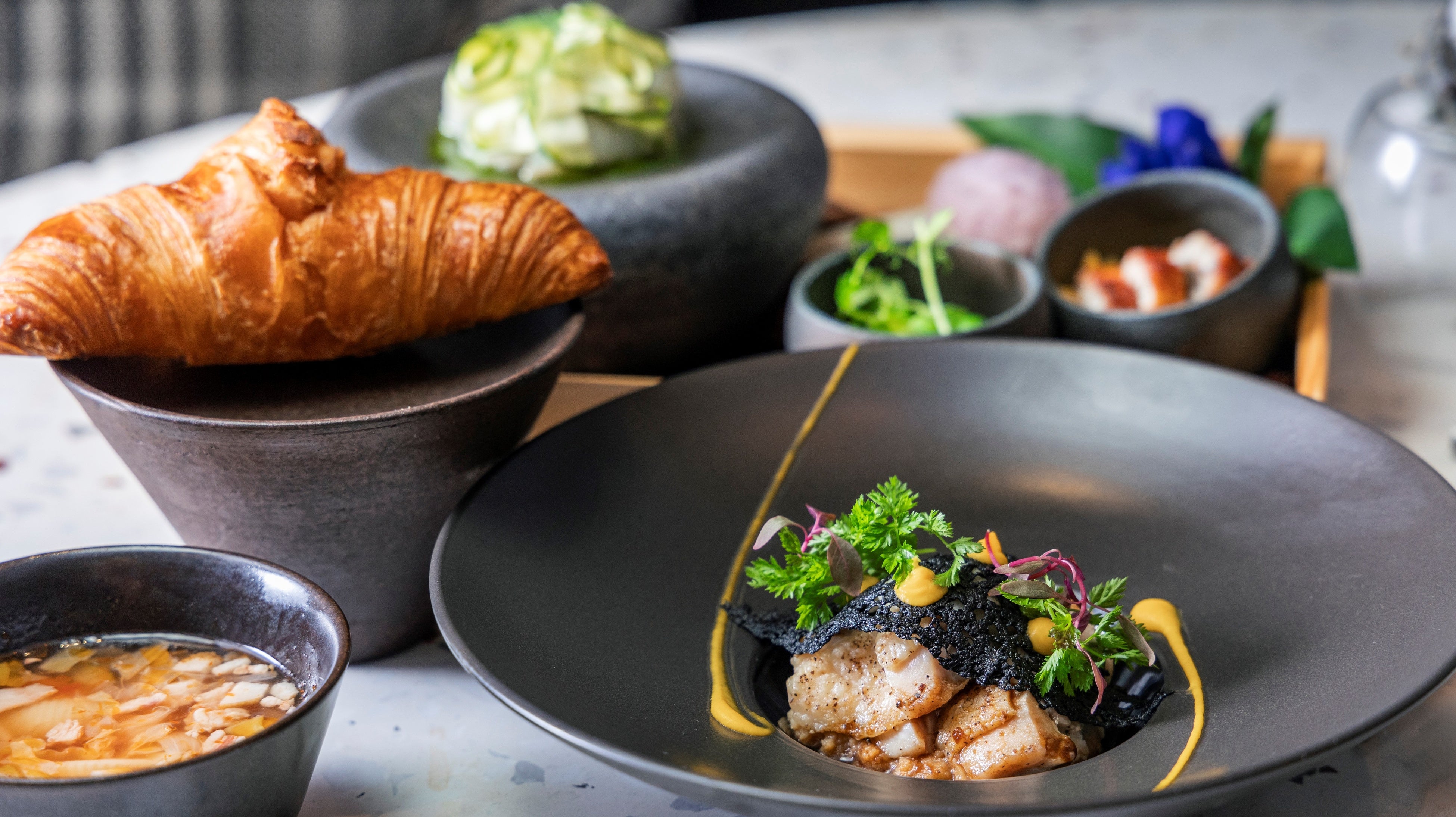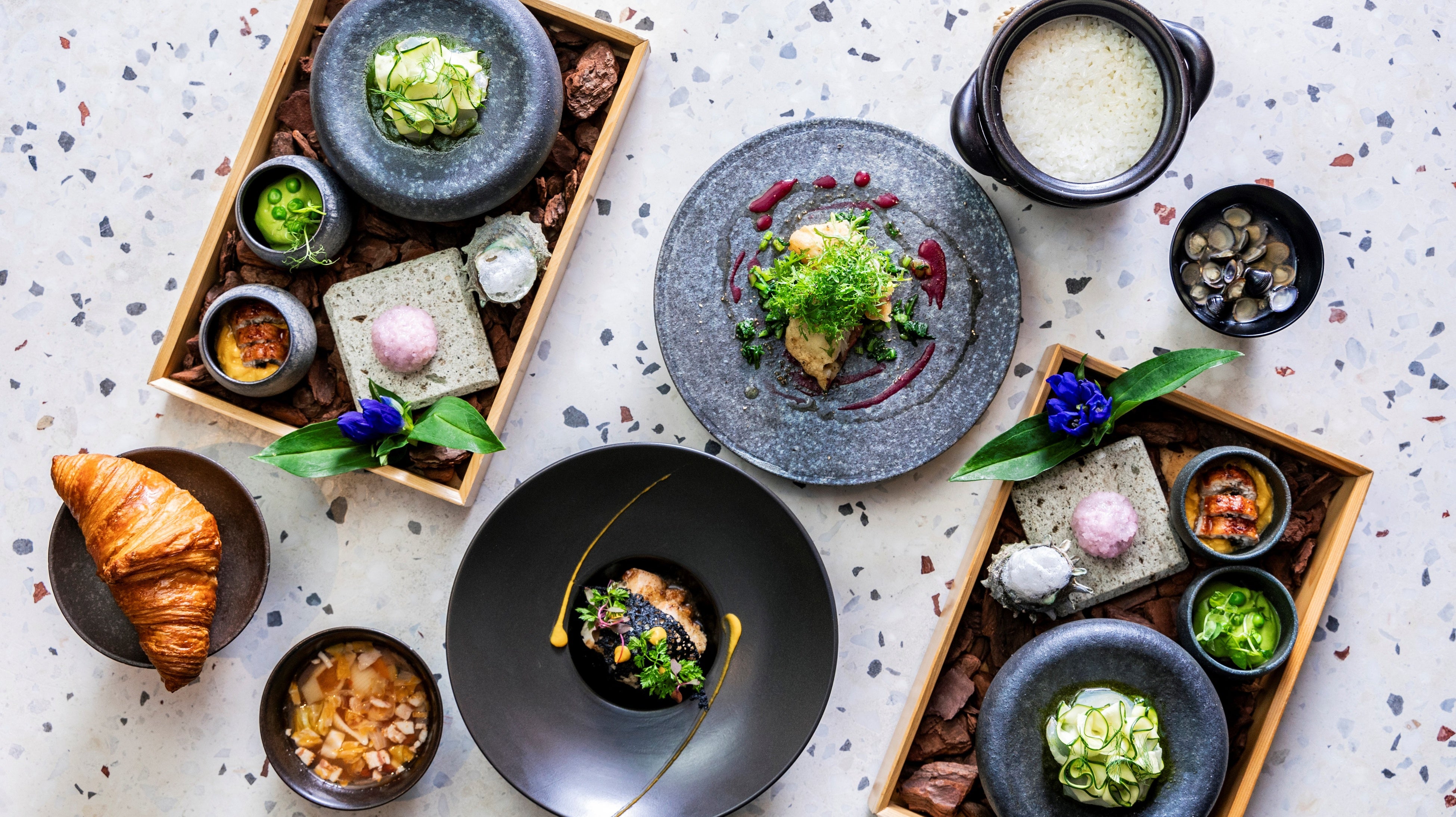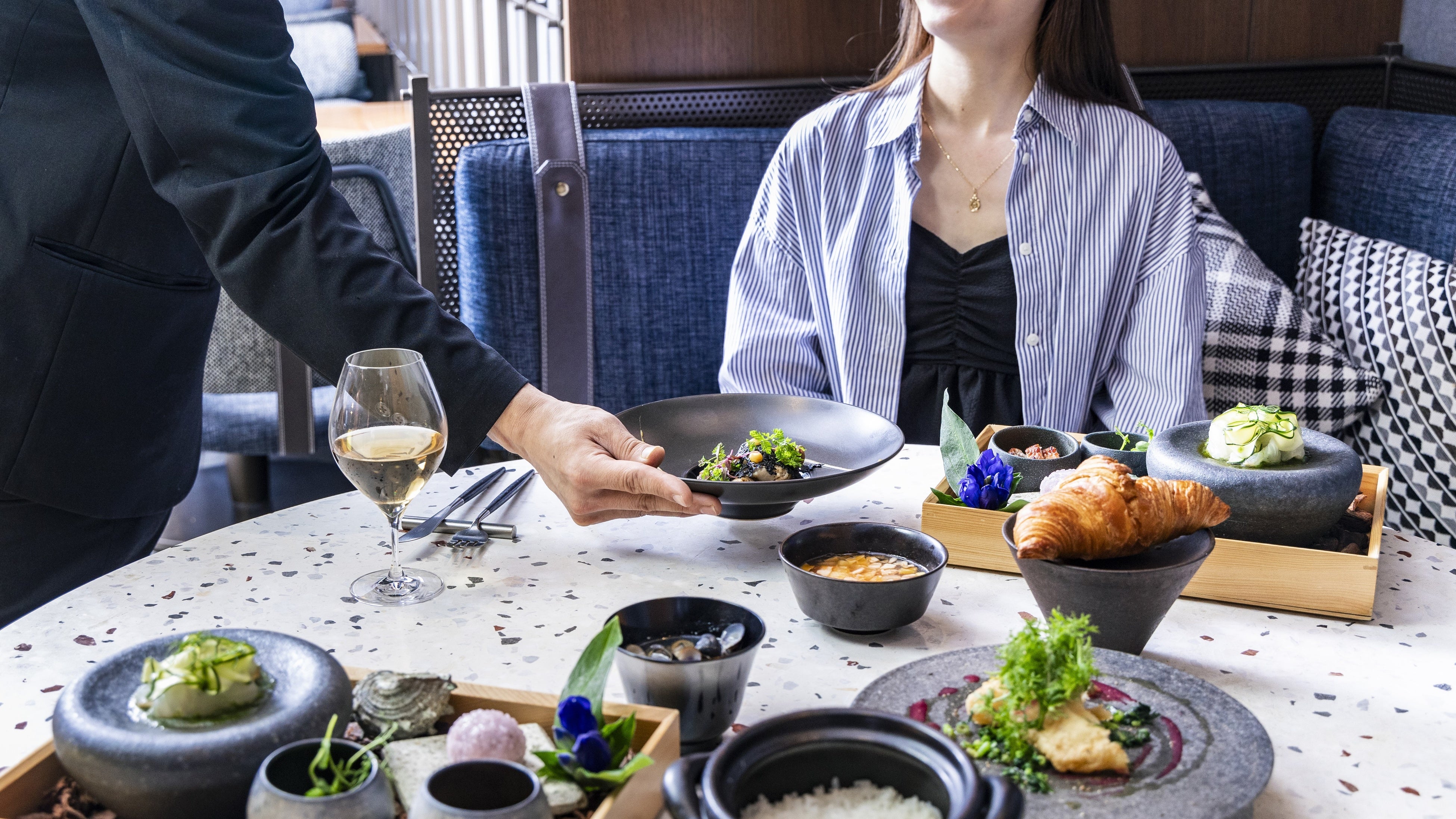 オールデイダイニングレストラン「THE LIVELY KITCHEN 福岡博多」では、和の食材と食器にイタリアンの調理法を掛け合わせ、さらにトレンドや季節表現を加えたモダンジャパニーズイタリアンを提供しております。有田焼など重厚感のあるのこだわりの和食器に繊細に盛り付けられた料理は、シェフこだわりのトレンドや季節の表現が混じり合い独創的な一皿に仕上がっており、味だけでなく提供スタイルやストーリーまで考えられ、カジュアルな接客と共に驚きと発見を楽しめるユニークなメニュー構成が特徴です。