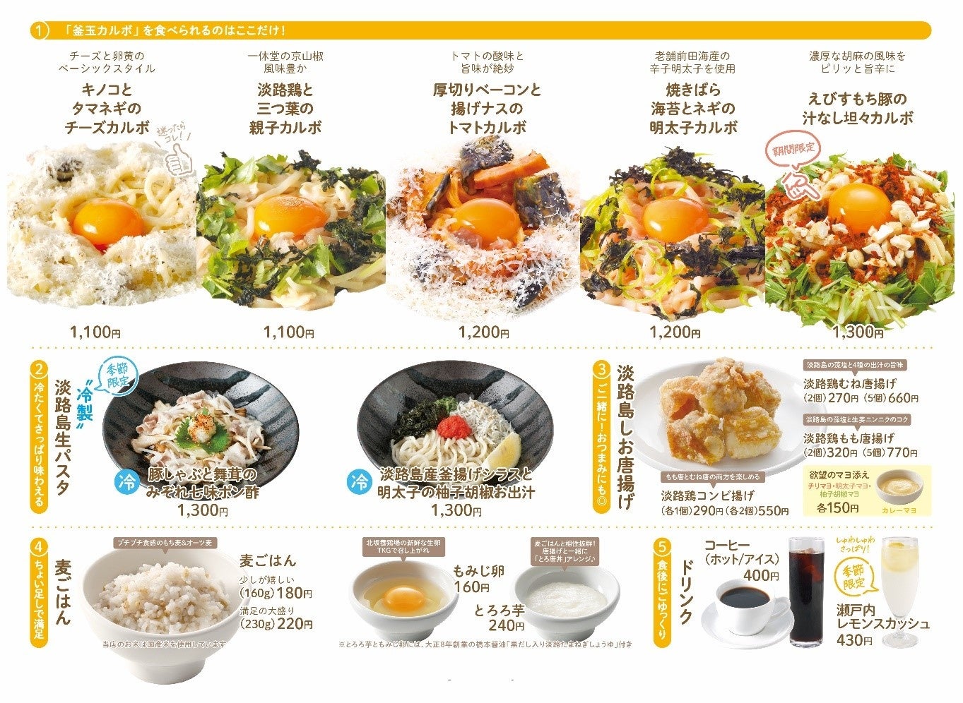 『waSTEP AWAJISHIMA』内メインダイニング 釜玉カルボ“Trepici(トレピチ)” より、2024年8月7日(水)新メニュー登場!!