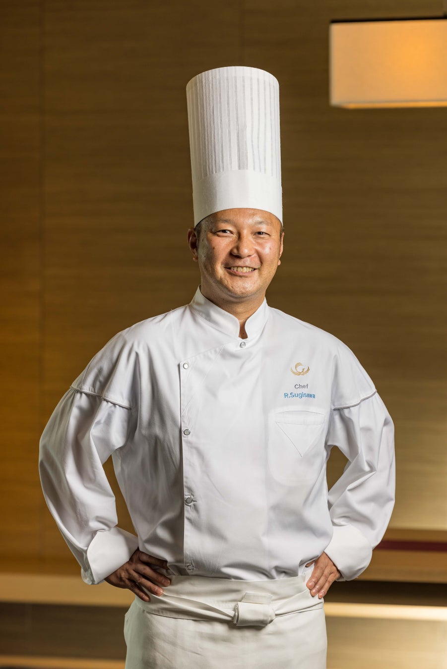 26歳でフランスに渡り、本格的にフランス料理を学ぶ。帰国後、名古屋東急ホテルに入社。2001年セルリアンタワー東急ホテル「クーカーニョ」シェフへ就任し、2007年「ミシュラン東京’08」一ツ星を獲得。2008年横浜ベイホテル東急 総料理長へ就任し、2017年からは副総支配人も兼任。2019年4月から現職。お客さまの心に残るおもてなしの追求と、絵画をイメージしたメニューの創作など、新しい料理の世界を開拓し続けるほか、後進の育成にも力を注いでいる。