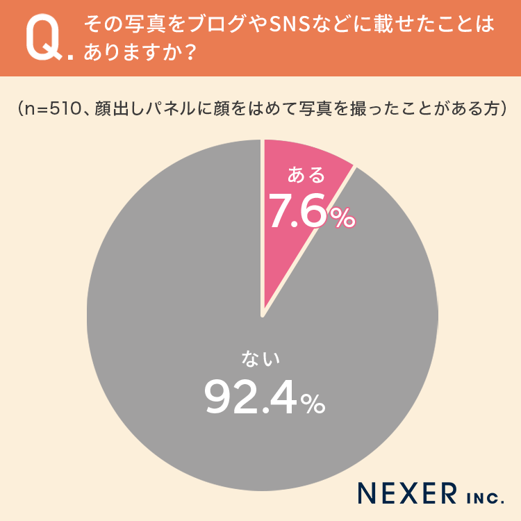 ブログやSNSなどにその写真を載せたことのある方は7.6%という結果になりました。