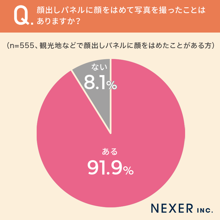 91.9とほとんどの方が、顔出しパネルに顔をはめて写真を撮ったことが「ある」と回答しています。