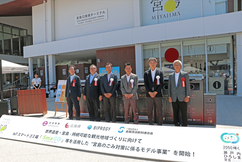 ・廿日市市 事業実施場所である宮島における現地調整業務 ・広島県 モデル事業実施のサポートならびに、事業実施後の波及性の検証 ・BIPROGY 代表事業者として全体コーディネート、スマートごみ箱「SmaGO」の調達・設置 ・全国清涼飲料連合会 ペットボトル(3分別)・缶・びん等の飲料容器ならびに飲み残しの分別排出促進に関する各種連携 |