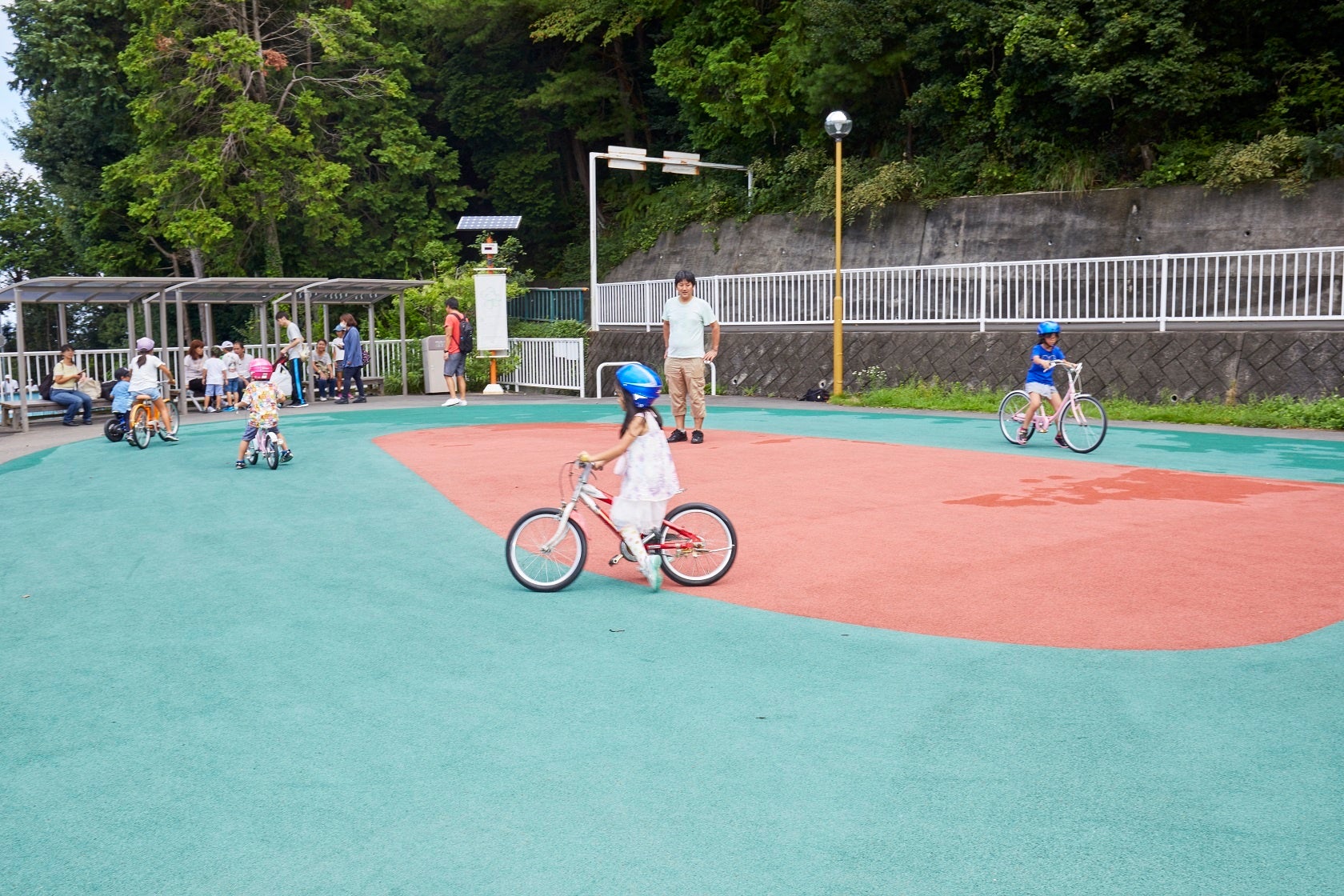 練習広場内は転倒時に体の負担の軽減のためにクッション材が敷かれており、安心して自転車の練習が行えます。