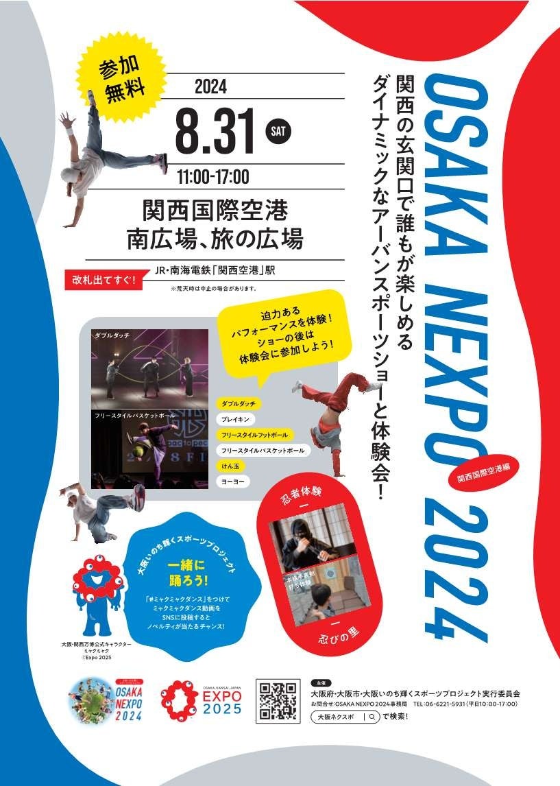 パリ五輪で金メダルを獲得して話題の「ブレイキン」など、プロを招いた様々なアーバンスポーツパフォーマンス、またプロのレクチャーによるアーバンスポーツ体験会を関西国際空港 南広場・旅の広場で実施いたします。