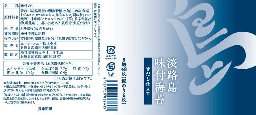 商品名 :淡路島味付海苔(旨だし仕立て) 発売日:2024年8月20日(火)