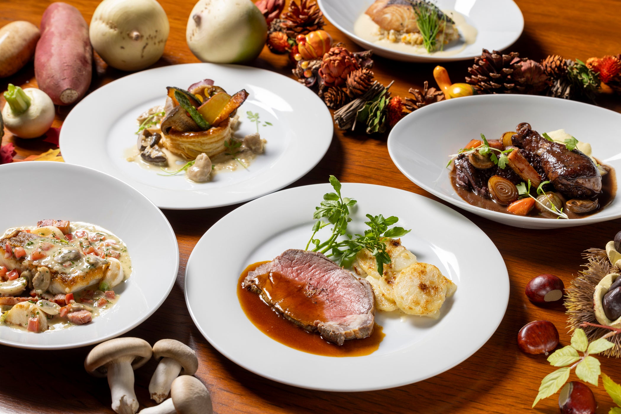 フレンチ キッチンでは、秋の味覚を堪能するセミブッフェディナーも