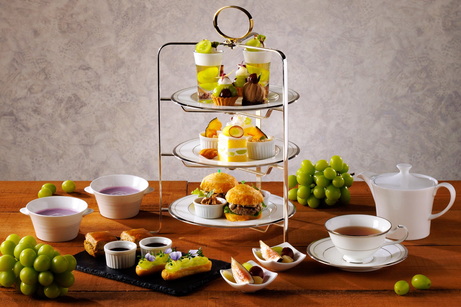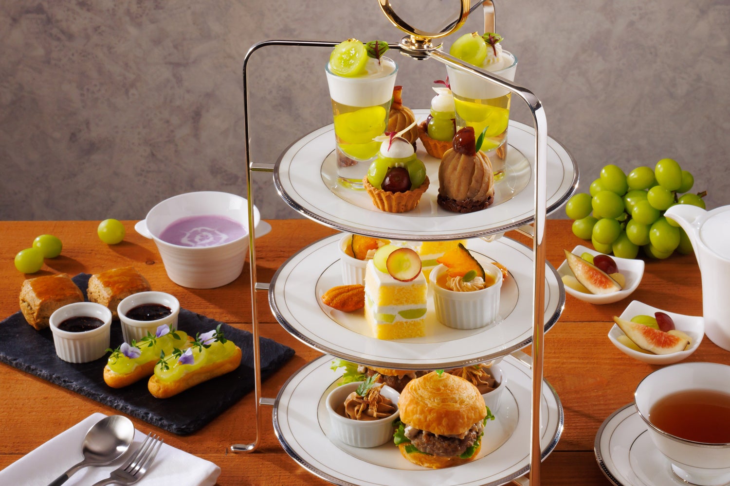 旬の果実を味わうアフタヌーンティーとして、今秋はシャインマスカットを主役としたスイーツ4品を含む、秋の味覚満載のスイーツ・セイヴォリー12品をご用意します。