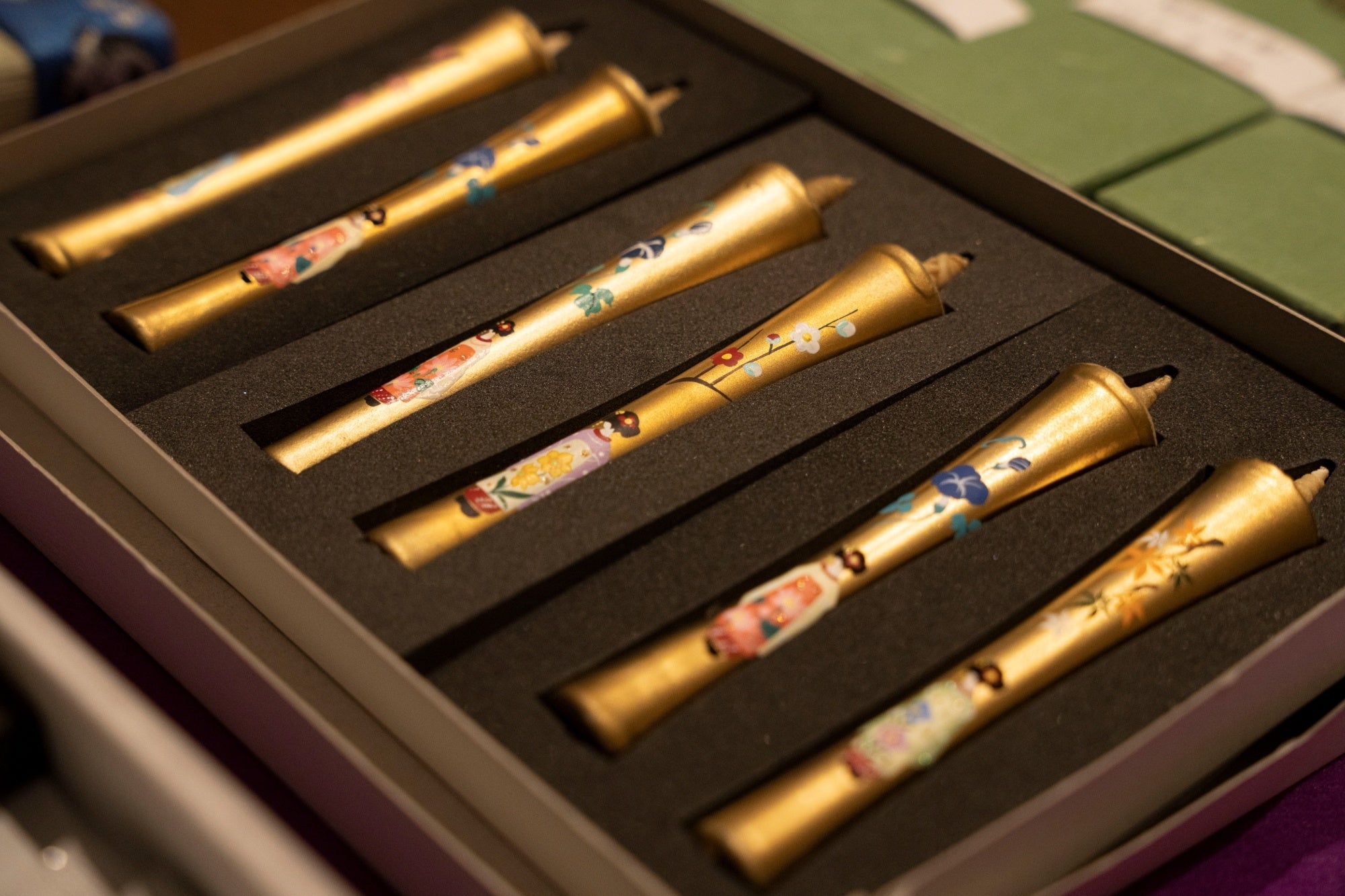 ※京都市では、京都市伝統産業活性化推進条例に基づき、京都市伝統産業活性化推進審議会の答申を受けて、74品目を京都市の伝統産業に指定しており、今回の伝統産業・文化体験の中では、『西陣織や京友禅など舞妓さんが身にまとう様々な装飾品』『和蝋燭』が京都市指定伝統産業品です。