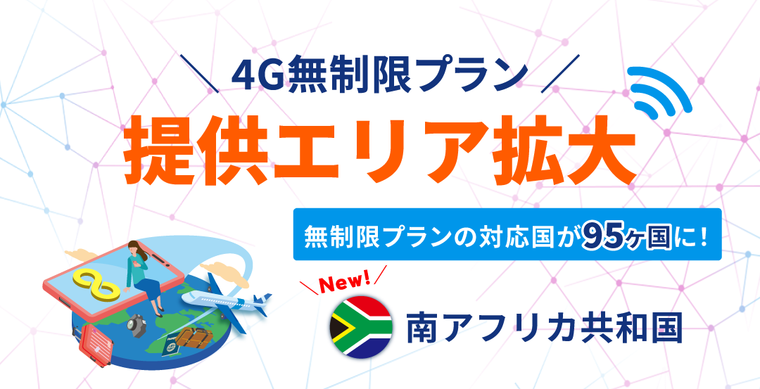 また、南アフリカ共和国では5Gプランに合わせて、4G無制限プランの提供を開始しました。4G無制限プランの対応国は95の国と地域となります。