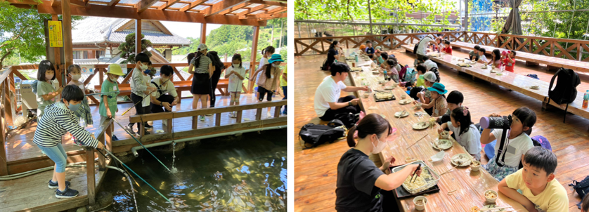 マス釣りやうどん作りなど、そのほかの体験も充実しています。釣り上げたマスは焼いて、お昼ご飯としてお召し上がりいただきます。