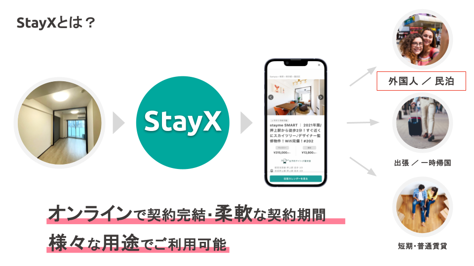 * matsuriでは、民泊運用に関わる全てのソリューションとして「StayX」と総称しています。