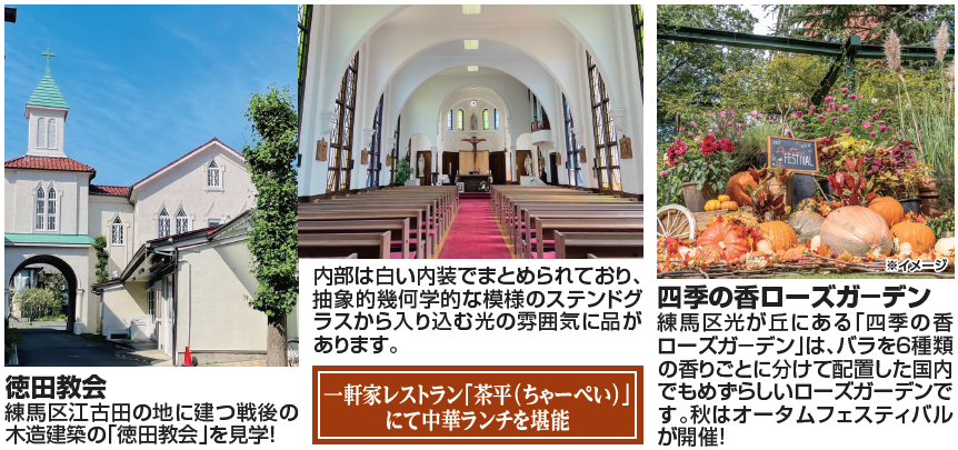 ① 練馬区のバラ園と教会めぐり!秋バラ香るローズガーデンと教会&園芸店めぐりバスツアー