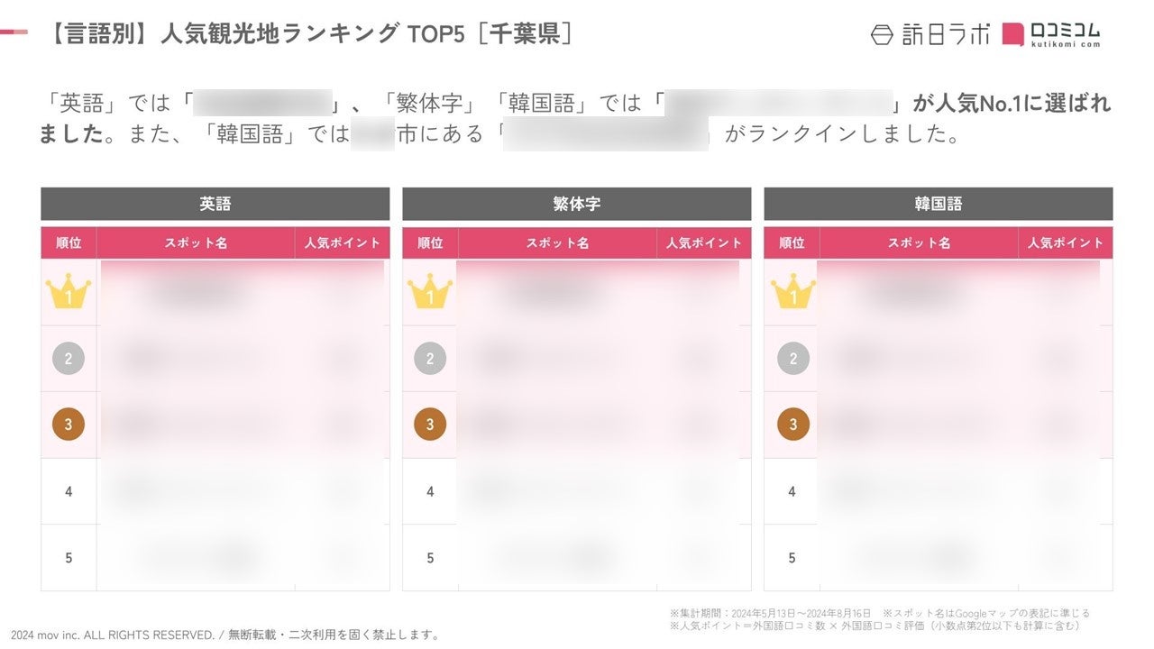 「繁体字」「韓国語」では同じスポットが人気No.1に選ばれ、「英語」とは異なる結果となりました。