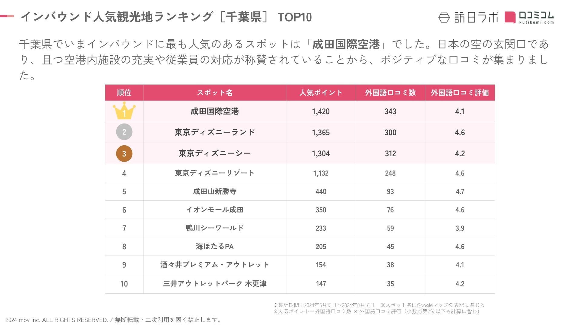 <インバウンド人気観光スポットランキング[千葉県編] TOP10>
