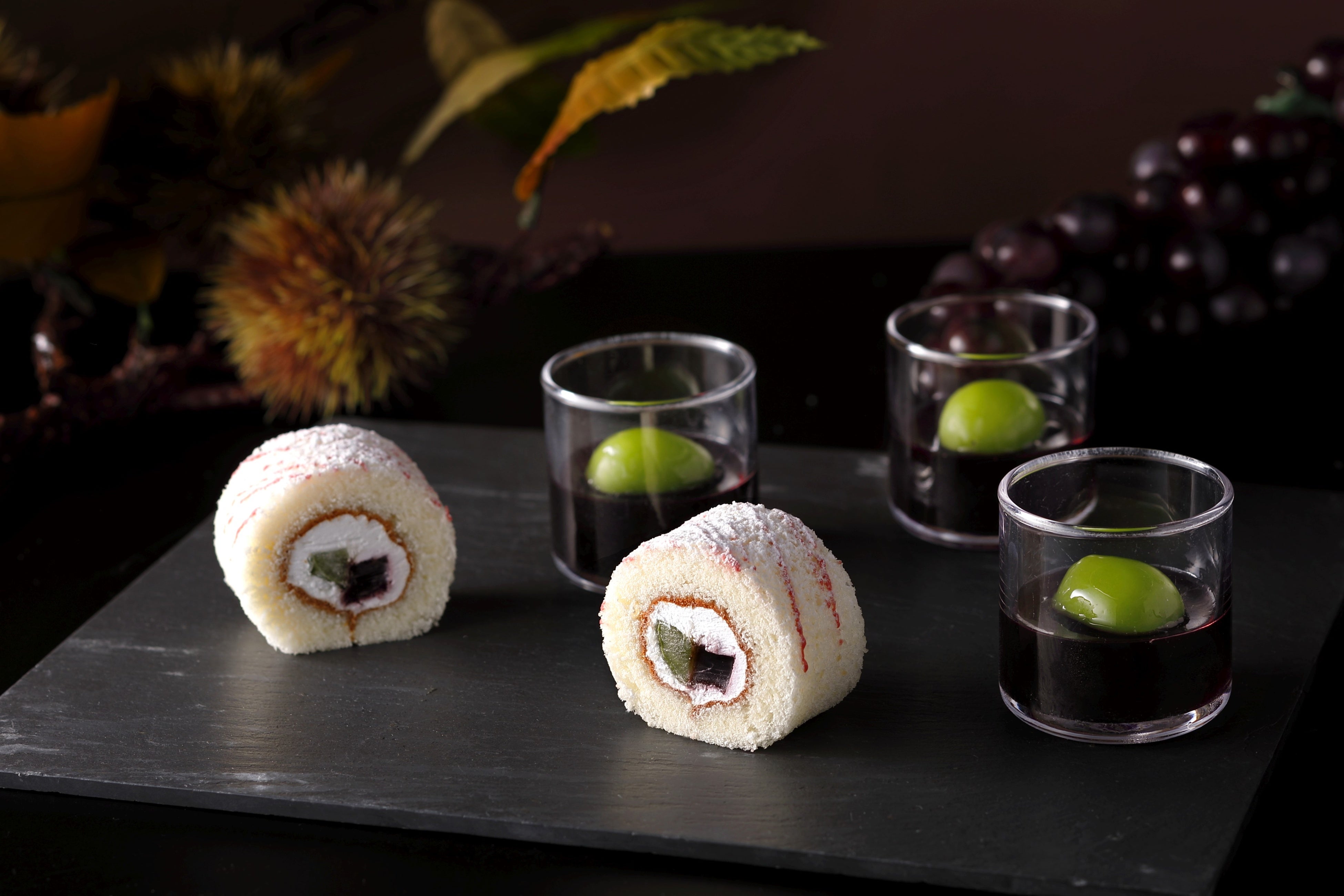 秋フルーツの王道、ぶどうを使用した「ぶどうロール」「グレープゼリー」など秋の味覚をふんだんに取り入れたスイーツも勢ぞろい。贅沢スイーツとホテルこだわりのお食事を思う存分ご堪能いただけます。