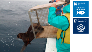 海岸に座礁(ストランディング)した生き物たちの調査や保護活動を行い、海洋環境の現状を把握し、生き物とその生息環境の問題解決に努めています。