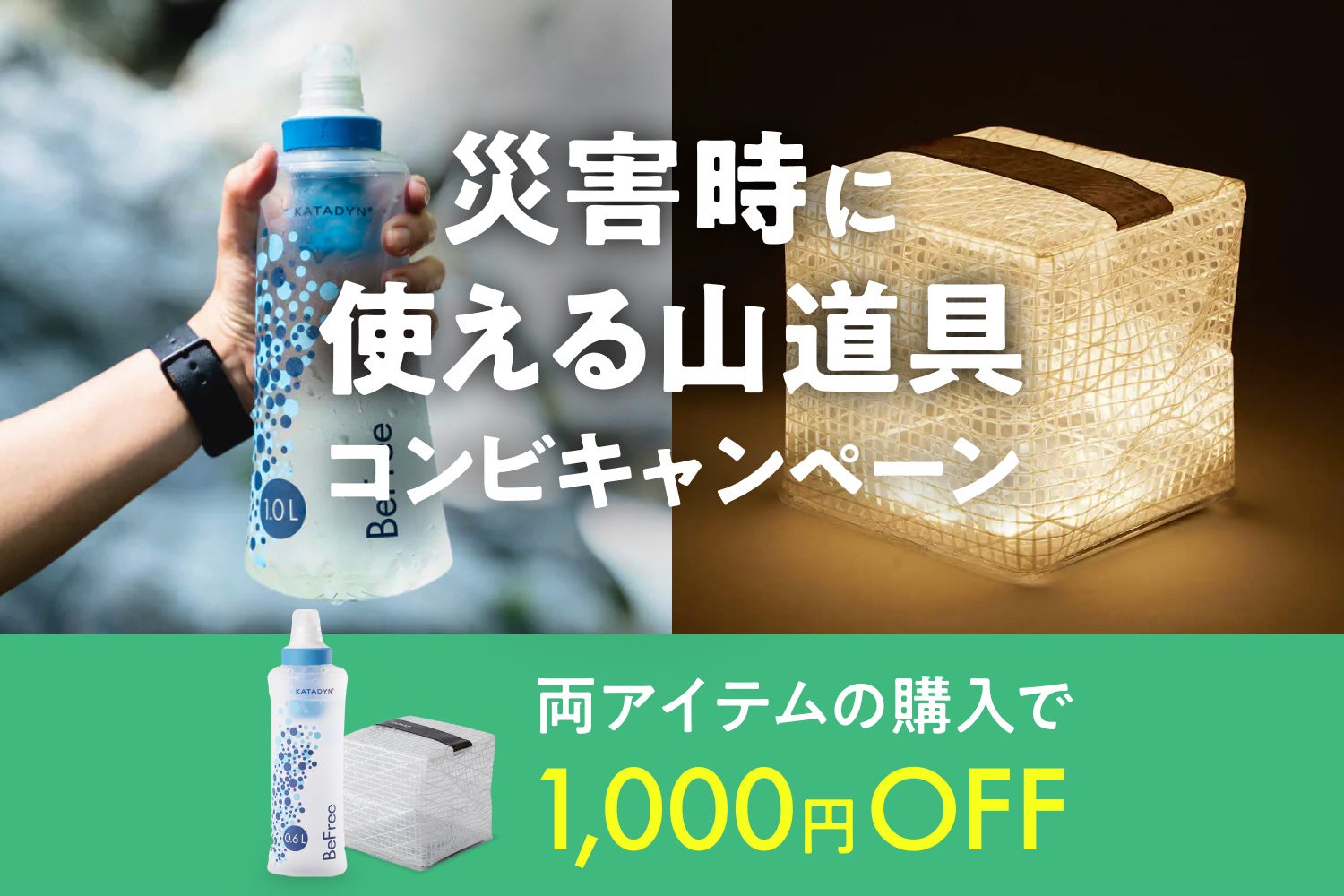 本キャンペーンでは、コンパクト浄水器とソーラー充電ランタンのご購入者を対象としたディスカウント企画と災害時に役立つ山道具を「照/食/凌/寝/収」5つの観点でご紹介したオリジナル特集記事コンテンツを公開。