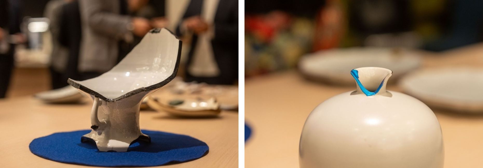 その第1 弾として、株式会社CACLのご協力により、輪島塗蒔絵師が、地震によって破損した九谷焼に漆を入れた作品を展示中で、石川ならではの伝統文化の協業を間近でご覧いただけます。また、9 月14日(土)・15日(日)には、誰でも参加可能なワークショップも予定しています。