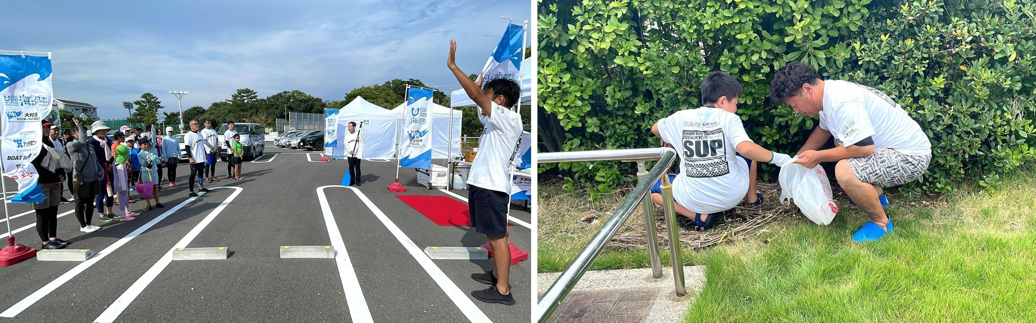 加えて、海洋ごみの8割は町から出たごみで、「ポイ捨て」「ムリ捨て」「漏れ出し」が原因であることを学び、きれいな海でSUPを楽しむために、参加者とスタッフみんなでごみ拾いを行いました。