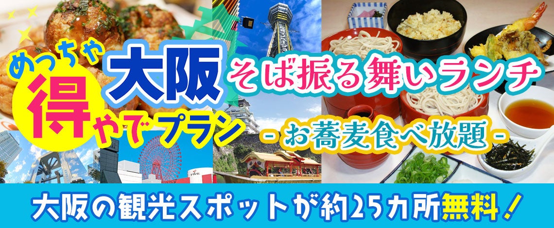 大阪楽遊パス1日券付き+そば振る舞いランチ(お蕎麦食べ放題)。