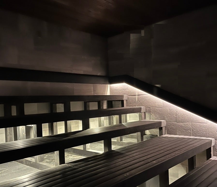 フィンランドサウナ✕和が融合した「漆黒 墨サウナ」は、スモークサウナと和の要素を組み合わせた、kSc-kisuke Sauna club-完全オリジナルサウナです。特徴はスモークサウナの煤によって黒く染まった室内を再現するため、日本の伝統的な「極上の漆黒」の、奈良墨と古来から使用されてきた渋墨を配合して表現します。