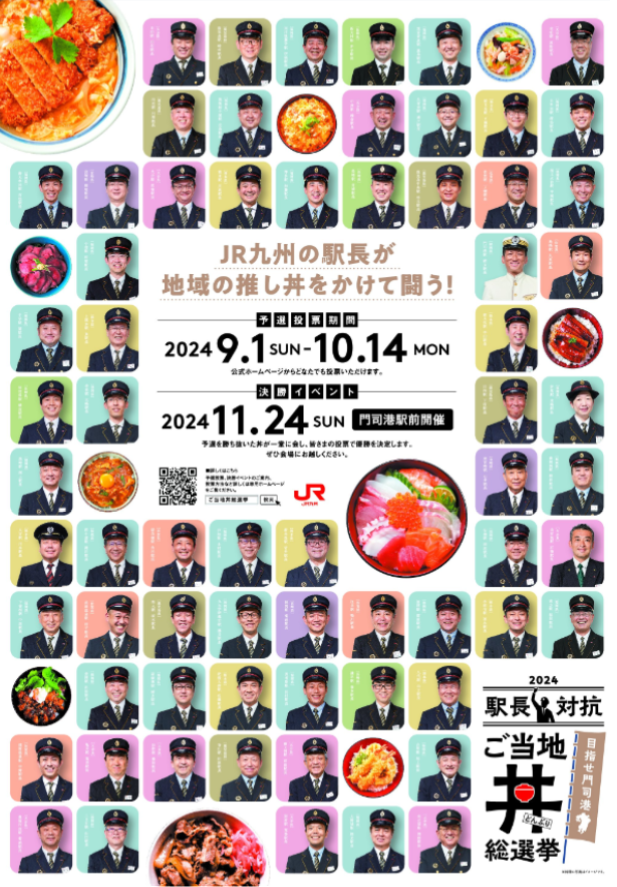JR九州では駅周辺におけるにぎわいづくりや、地域と一体となって地域の魅力を発信するため、多くの 素材を有する「九州の食」をテーマに『目指せ門司港!駅長対抗 ご当地丼総選挙』を開催いたします。