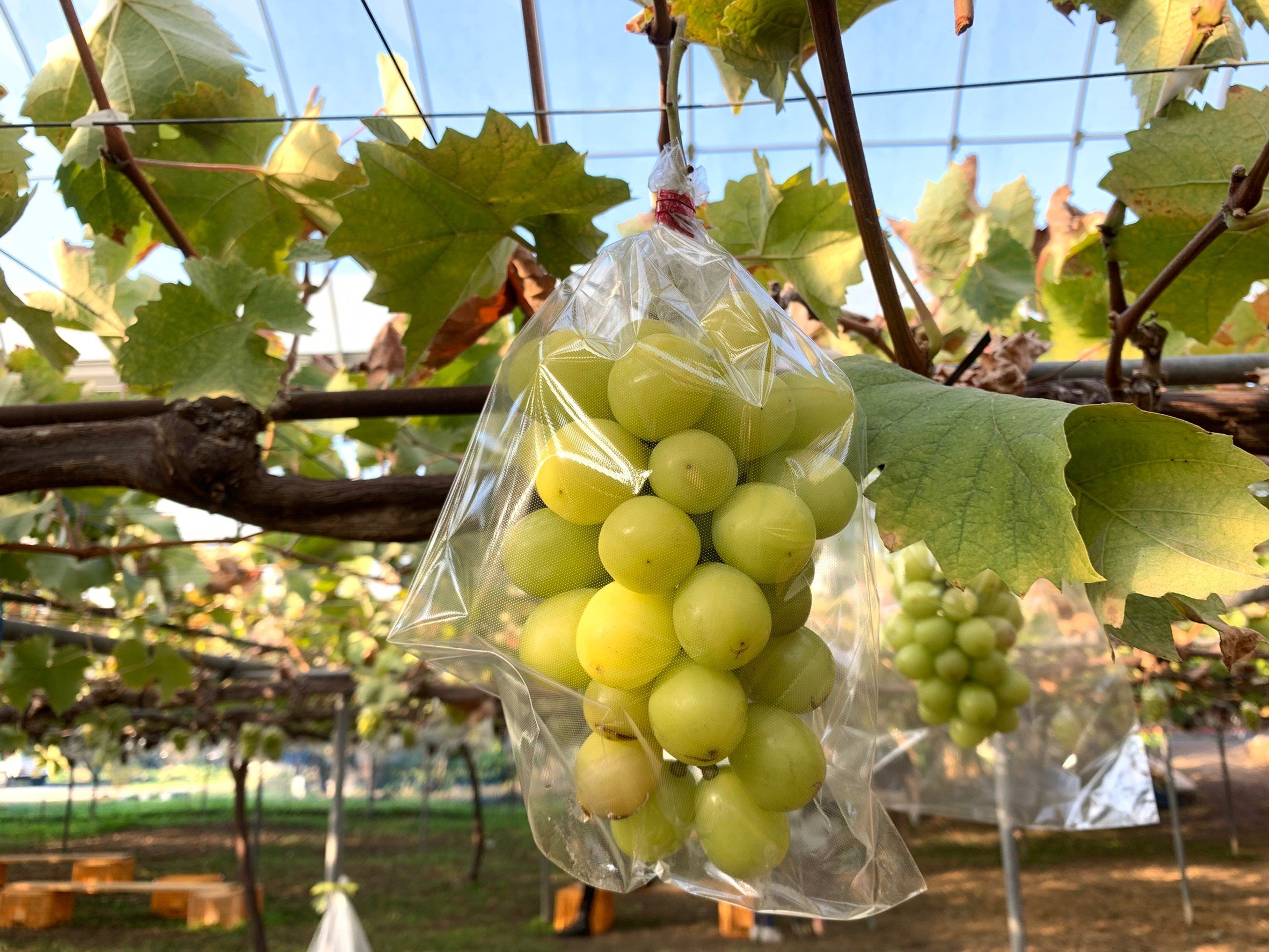 ぶどう狩りの中では珍しい、シャインマスカット狩りは貴重な経験です。