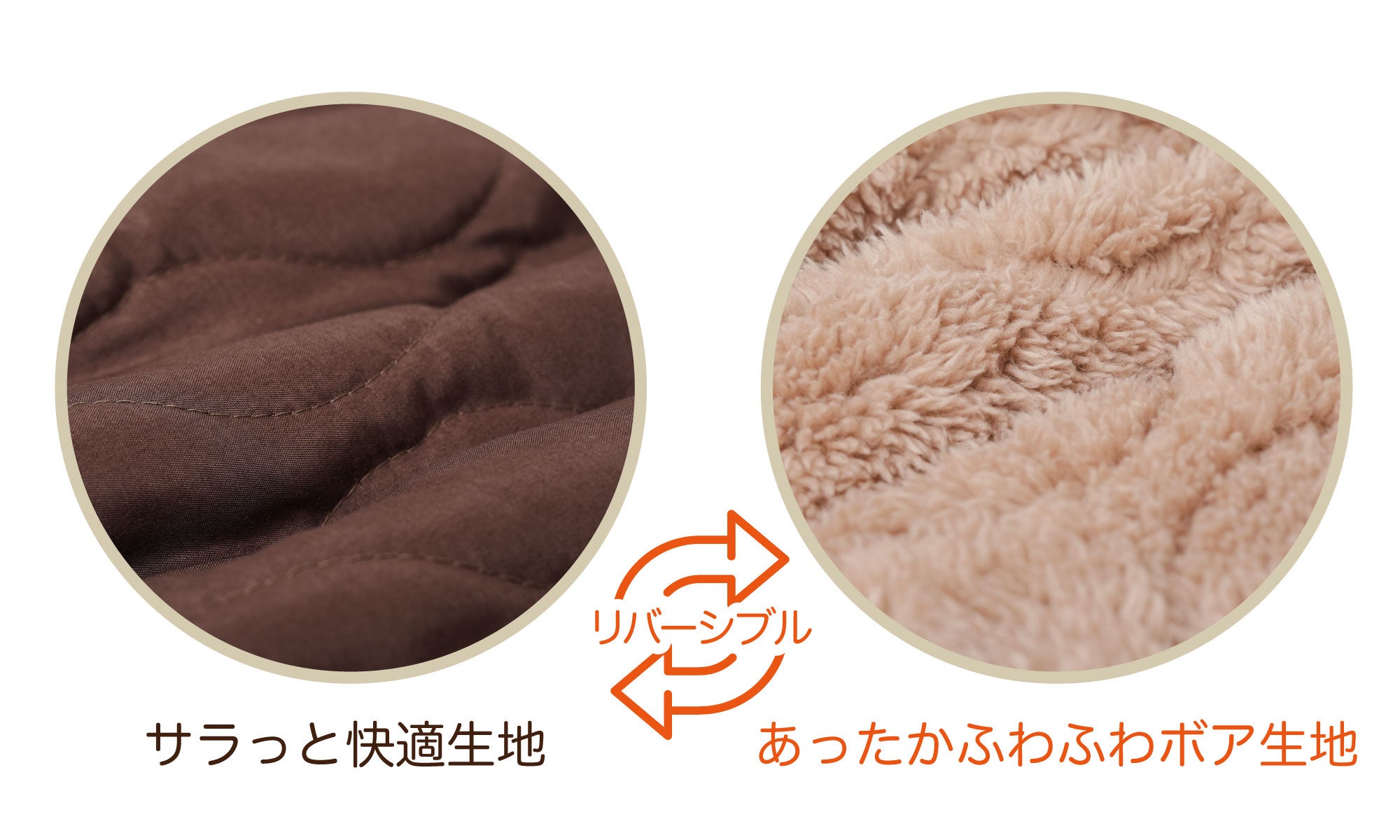あたたかいふわふわのボア生地とサラっと生地のリバーシブル仕様でオールシーズンお使いいただけます。