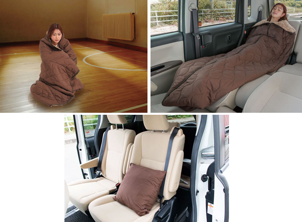 普段はクッションとしてお部屋に置いて、使いたい時に広げれば、着る毛布や寝袋、布団として使えます。