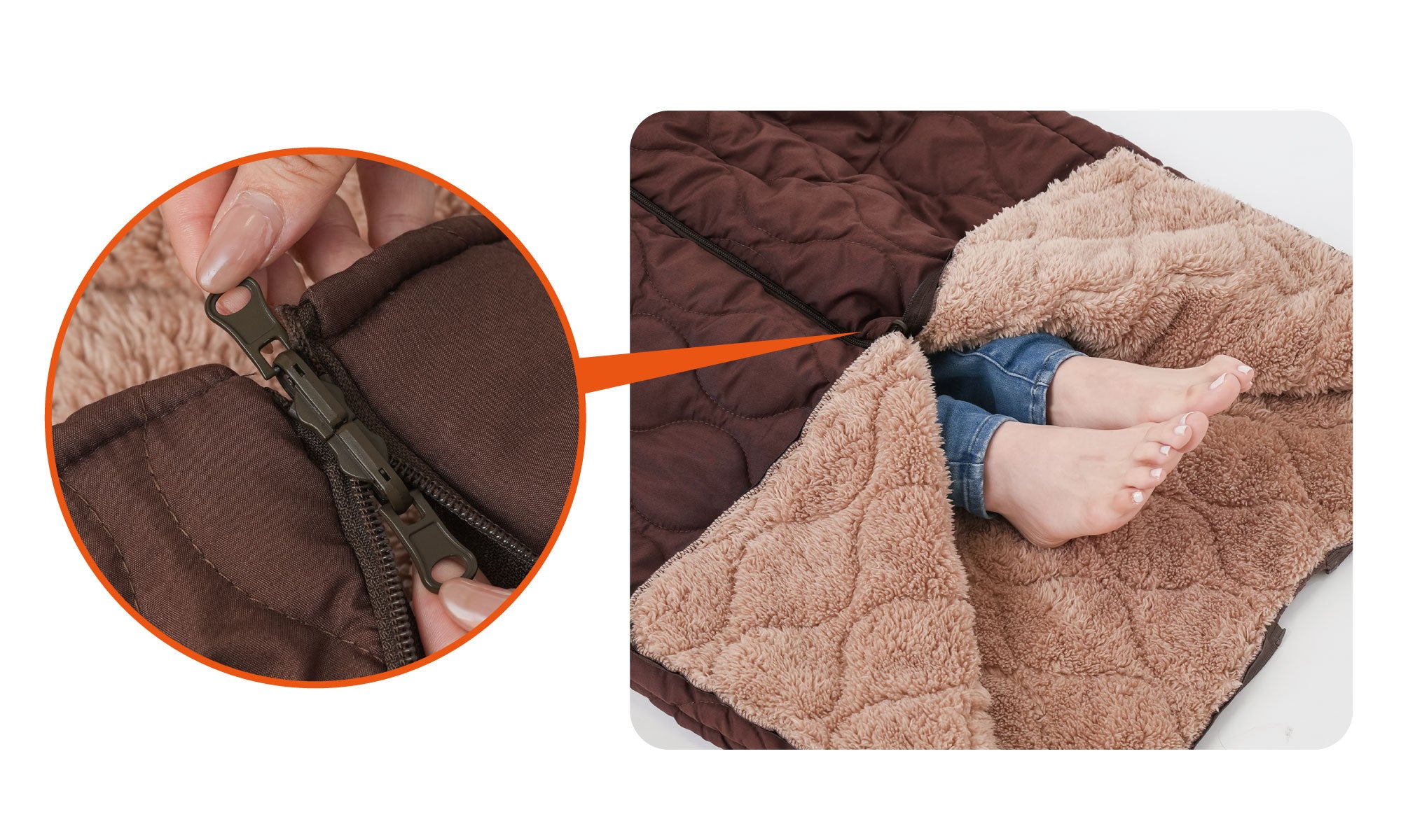 ダブルファスナー仕様で足元のファスナーを開けて足が出せます。