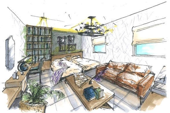 最上階は、子どもから大人まで一緒に愉しめる二段ベッドルームや、落ち着いてゆったりとした時間を過ごせるエグゼクティブルームなど、本を読むだけではなく幅広いシチュエーションでご利用いただける客室を6部屋ご用意しています。なお、ホテル施設内の書籍は全て購入が可能です。