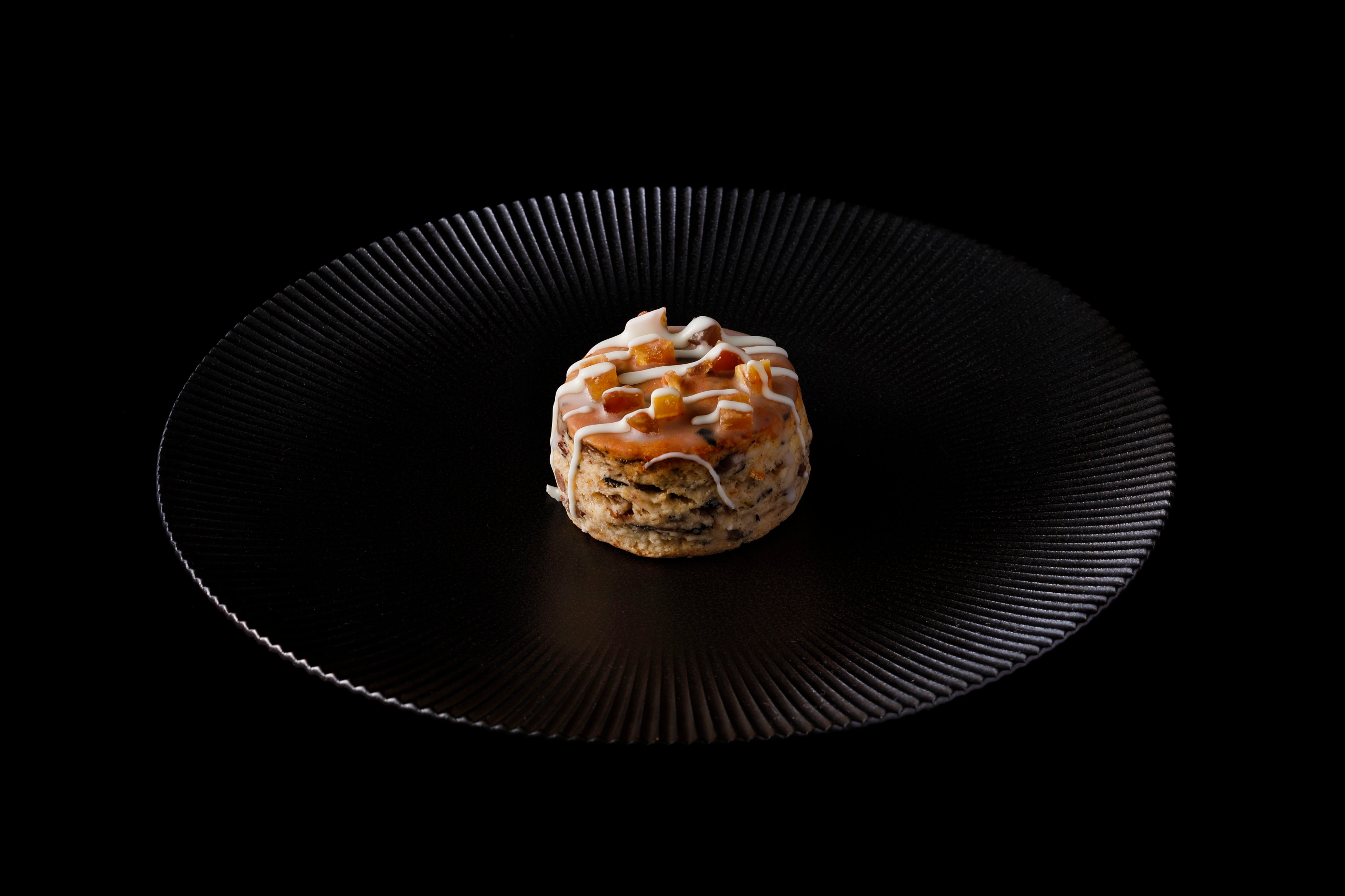ほどよい甘味のある渋皮煮の栗や甘くふっくらとした黒豆を、豆乳クリームバターと八穀パウダーを生地に混ぜ込んで焼き上げたスコーン。生地の表面には、ほくほく栗と呼ばれる黄栗をトッピングし、ホワイトチョコレートと、全体の味を引き締めるため、青ヶ島産「ひんぎゃの塩」を加え仕上げました。栗の上品な甘みが口いっぱいに広がる秋の旬を味わう、季節の一品です。