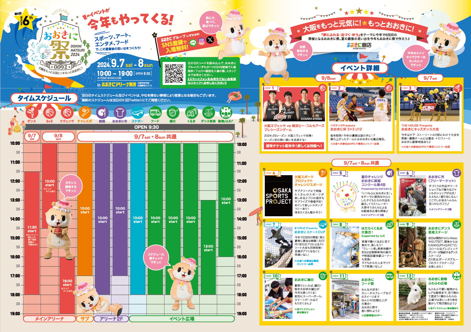 9/7(土)・8(日)おおきにアリーナ舞洲にて入場料無料で開催する「おおきに祭2024」