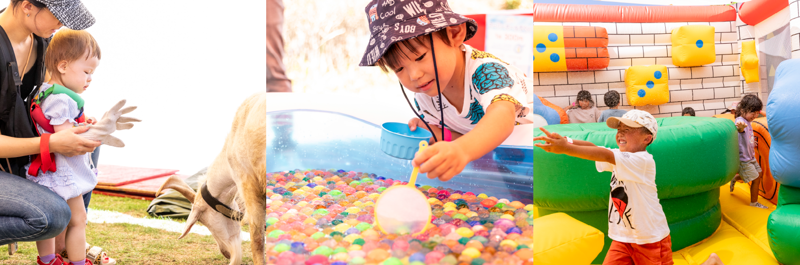 子ども達に大人気のふれあい動物園・はたらくくるまなどのコンテンツが登場。