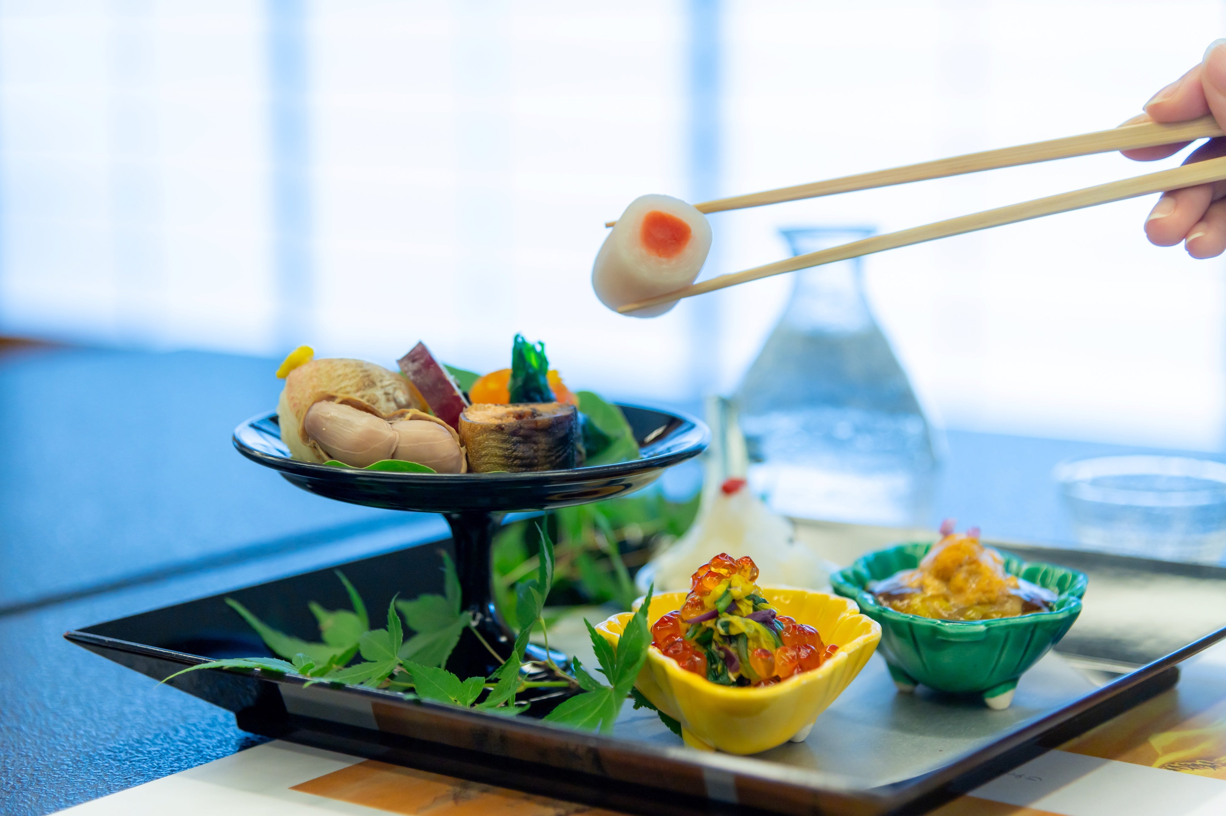 食材にこだわった和食をご提供しており、それぞれに趣の異なる和室の客室でお楽しみいただける部屋食や