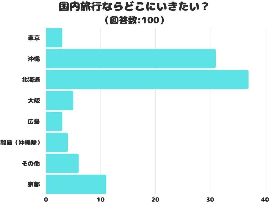 国内旅行ならどこにいきたい?をアンケートにて調査したところ、1位は「北海道」でした。