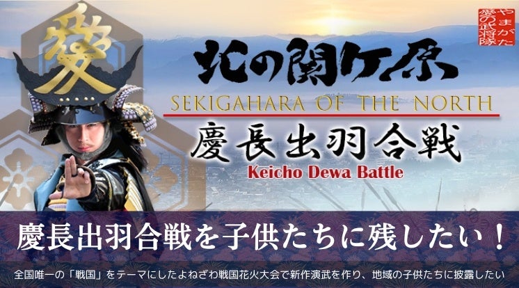 2024年10月12日18:30より米沢市市営野球場にて「第1回よねざわ戦国花火大会」が開催されます。米沢市では初となる有料花火大会として、地域の歴史と文化を次世代に伝える重要なイベントとなります。この花火大会は全国で唯一「戦国」×「花火大会」をテーマとし、1600年に起こった「慶長出羽合戦」をメインテーマとしています。上杉景勝・直江兼続、最上義光・伊達政宗などの名将が激突したこの戦いを、花火と新作演武で現代に蘇らせます。本クラウドファンディングは、この歴史的なイベントの為に特別な演武を製作し、地域内外の子供たちに歴史の価値を伝えるための資金を募るものです。