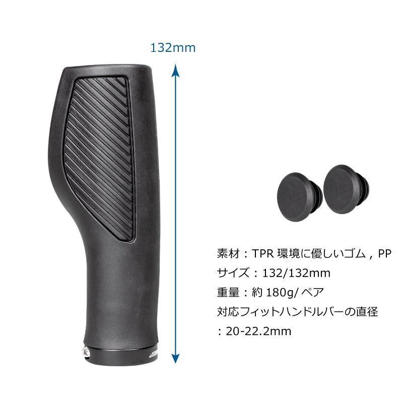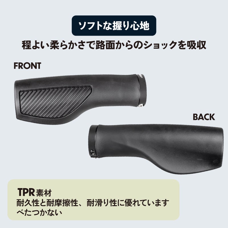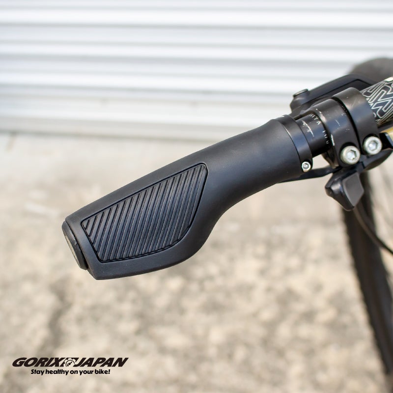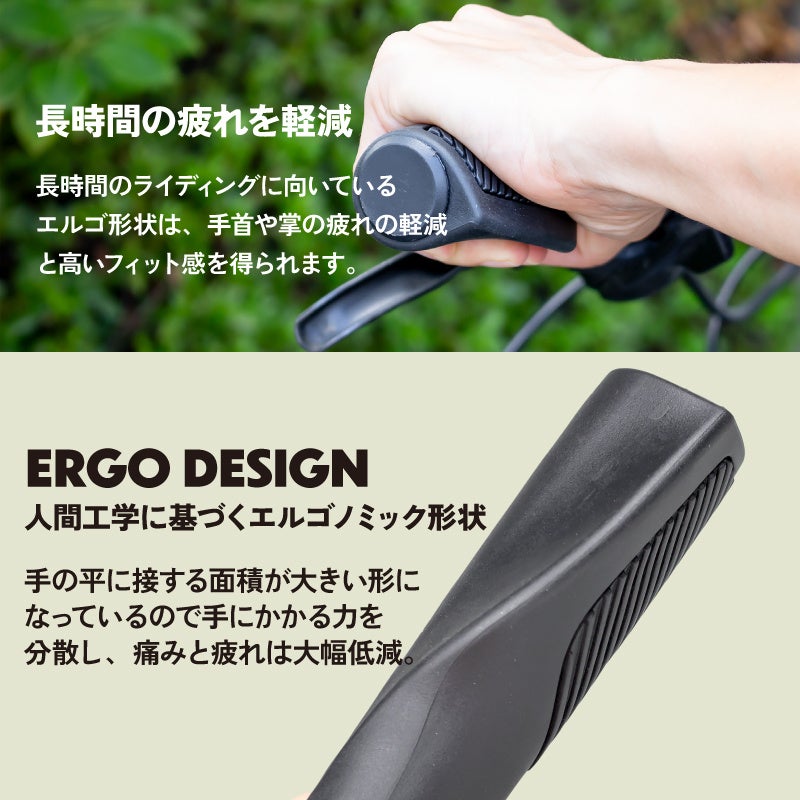 長時間のライディングに向いているエルゴ形状は、手首や掌の疲れの軽減と高いフィット感が期待できます。