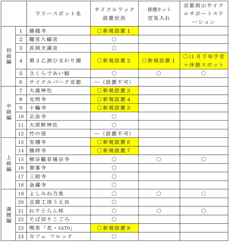 京都西山エリアを訪れるサイクリストが安心快適にサイクリングを楽しんでいただけるよう、今年度、新た