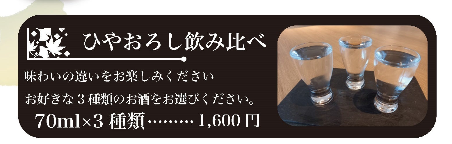 (2)お得な“ひやおろし飲み比べ(3種)”1,600円(税込)