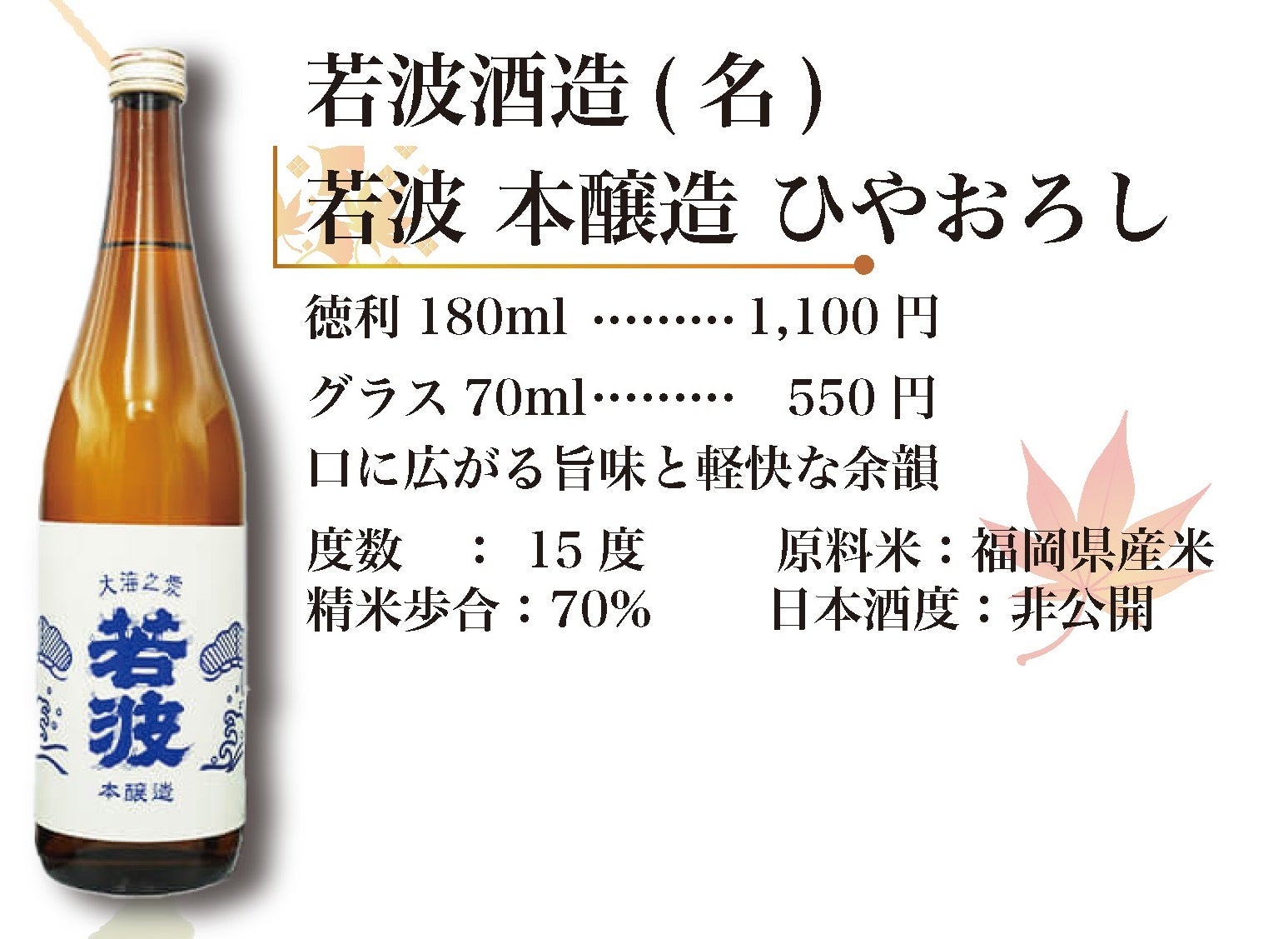 本イベントは、国内だけではなく海外からのお客さまが多くご利用されている、当ホテル内の「鉄板・串焼き 八くら」にて実施することで、地元福岡県産の美味しい日本酒をより多くのお客さまにご堪能いただきたく、また地元福岡の地域活性化の一助となる企画として、秋の新酒「ひやおろし」の販売開始に併せて実施いたします。お得な“ひやおろし飲み比べ(3種)”メニューもご用意しておりますので、是非ご賞味ください。