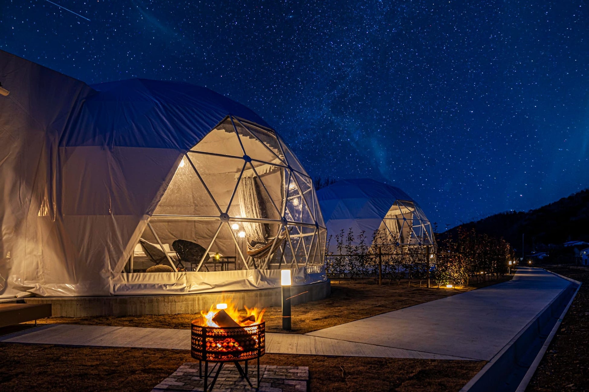 ◆冷暖房完備のドーム型テントにホテルライクなアメニティーも完備。快適なご滞在を。