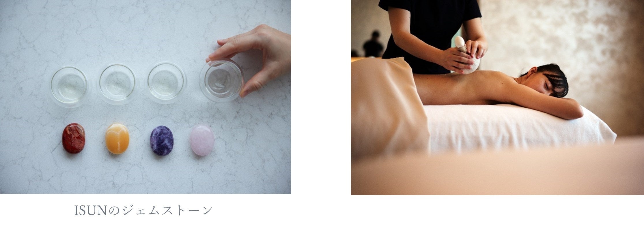 特におすすめのメニューは、心と体のさらなる開放を目指し、ヒーリング作用の強い「ジェムストーンクリスタルマッサージ」です。アメリカの高級スパブランドISUN(アイサン)の4つのジェムストーンと、その波動に呼応するハーバルオイルを使用し、身心の調和を深めてまいります。