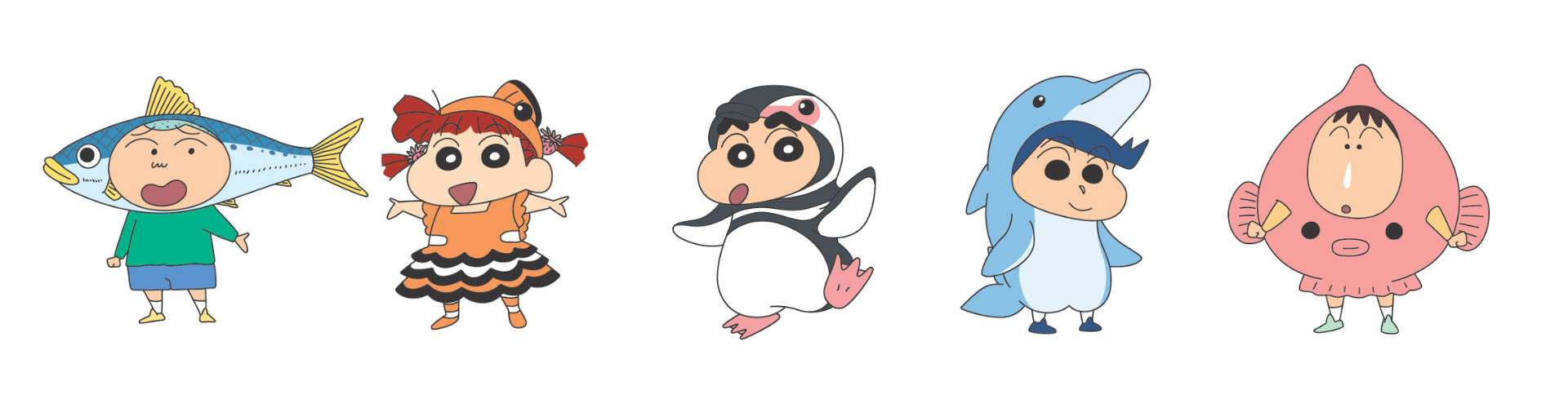 初の『うみがたり』と『クレヨンしんちゃん』とのコラボレーションが実現した本企画では、『クレヨンしんちゃん』の主要キャラクターである「カスカベ防衛隊」のメンバーのオリジナルコスチュームイラストを特別に描き下ろしていただきました。オリジナルコスチュームは『うみがたり』で人気の生きものたちをモチーフにしています。また、謎解きのストーリーも海の生きものの生態や、海で起こっている環境問題などをテーマにしたオリジナルストーリーとなっています。