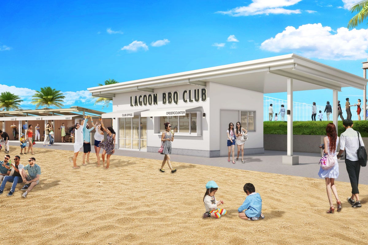 ラグーンビーチを見渡す絶景のロケーションに、約200席の大型BBQ場が誕生します。TOOTH TOOTH からお届けする厳選した旬の食材等を活かしたBBQ プランなど、ラグジュアリーにBBQを楽しむもよし、食材やドリンクを持ち込んでカジュアルにBBQを楽しむもよし。さまざまなシーンで使える、上質な都市型リゾートBBQパークです。