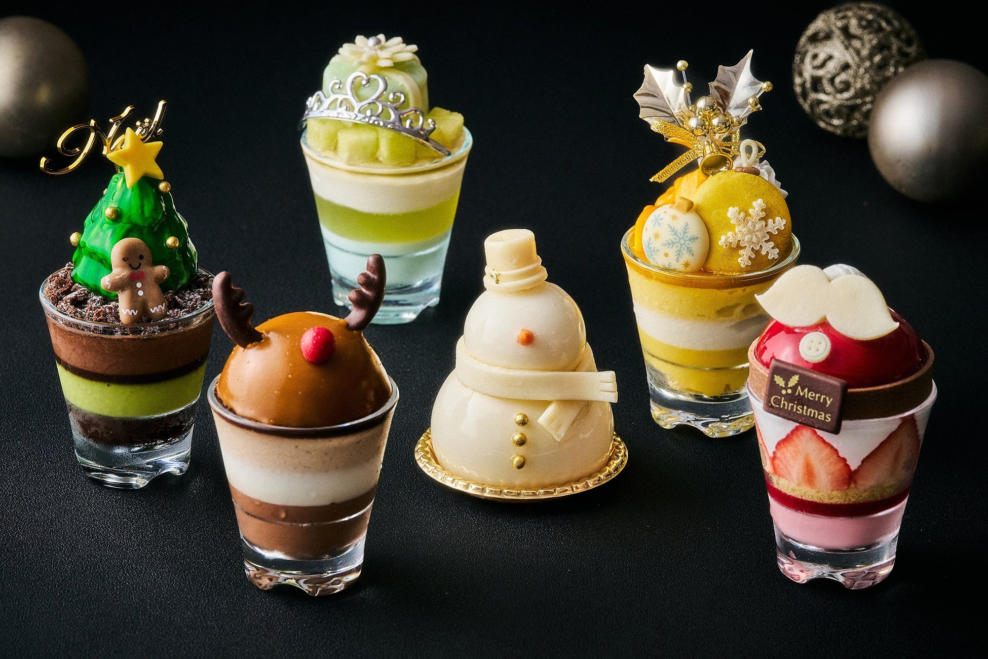 「ホリデーアソートヴェリーヌ」のヴェリーヌはグラスに入ったスイーツを意味し、赤く艶やかなラズベリームースでサンタクロースの衣装を表現した「サンタヴェリーヌ」のほか、トナカイ、スノーマンなど、クリスマスや冬をモチーフにした6種類のスイーツをBOXに詰め込みました。ご友人やグループパーティーのお土産としてもおすすめです。